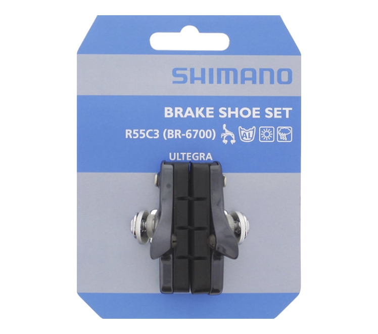 Гальмівні колодки шосе R55C3 Ultegra: високоякісні гальмівні колодки більш ефективні на сухій дорозі. Касетна фіксація.