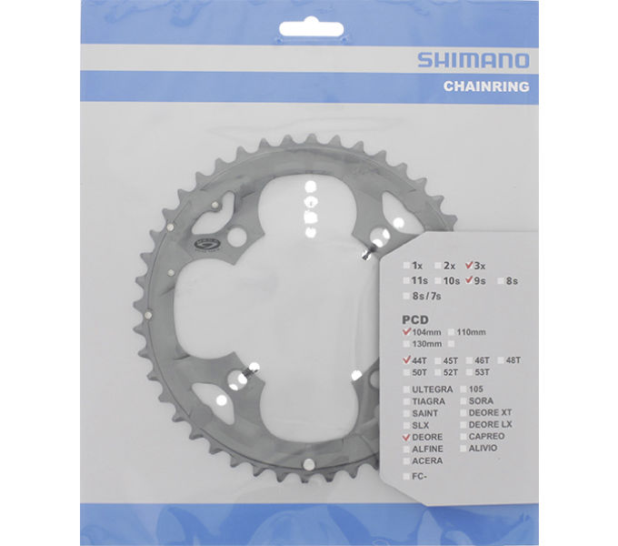 Зірка шатунів FC-M590/ 591, 44 зуб. • Діаметр монтажу: 104 мм • Трансмісія: 3Х9 • Матеріал: сталь